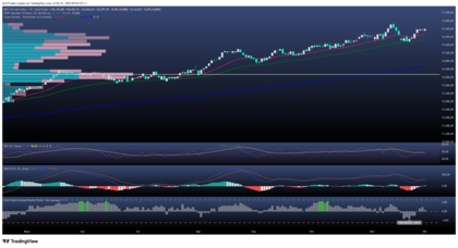 Mientras tanto, las medias móviles continúan actuando como soporte dinámico. Los niveles a vigilar quedan en los 16.144 puntos, referencia clave para mantener el sesgo positivo sobre la media de 50, y 15.755,98 puntos, donde se concentra la media de 200 sesiones. Con una apertura alcista por encima de los 16.300 el índice parece haber arrancado siguiendo la tendencia de volver a testear los máximos alcanzados a mediados del mes de noviembre. RSI actualmente se haya en zona neutra en 56.61%, MACD se haya recuperando un territorio positivo perdido con el histograma en el inicio de un desarrollo alcista. ActivTrades Europe Market Pulse parece estar indicando un sentimiento de mercado de neutralidad con un ligero incremento paulatino del riesgo, señalando entradas de institucionales en el mercado, preparándose quizás para lo que queda de año en este último empujón del rally navideño que suele iniciar en estas fechas.