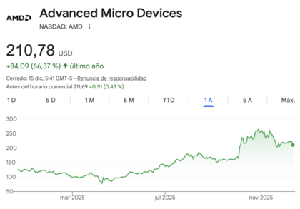 AMD se presenta como una de las acciones internacionales más atractivas si buscas crecimiento con cierto margen de valoración. Aunque NVIDIA capturó la atención inicial de la Inteligencia Artificial, la demanda por una "segunda fuente" de hardware es masiva. Los grandes centros de datos como Microsoft y Meta requieren diversificar su suministro, y el chip MI300 de AMD se ha consolidado como la alternativa más viable y escalable.