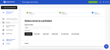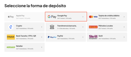 Elegir Google Pay como forma de depósito en Pepperstone