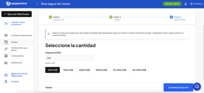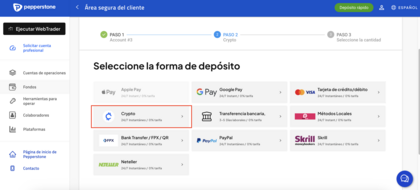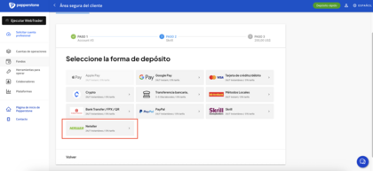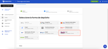 - Desde tu cuenta Pepperstone, elige “Skrill”.