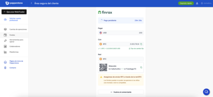 - Copia la dirección del monedero que muestra Pepperstone.