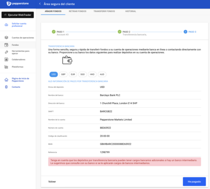 ¿Cómo fondear la cuenta con métodos locales en Pepperstone?