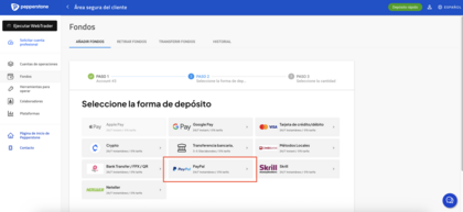 Seleccionar Paypal como método de depósito