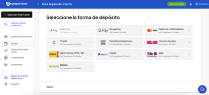 ¿Qué métodos de depósito están habilitados en Pepperstone?
