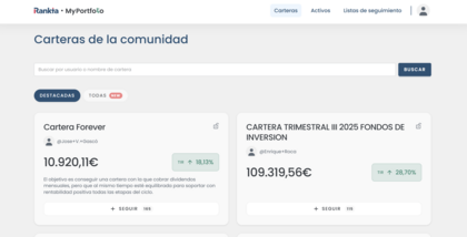 MyPortfolio de Rankia: simula, comparte y sigue carteras de inversión